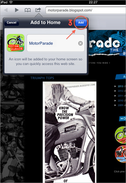 Open your iPhone/iPad browser and type 'motorparade.blogspot.com'.